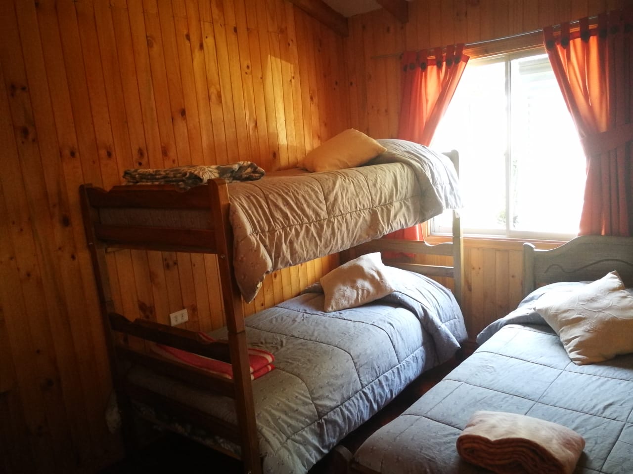 Habitación con cama matrimonial (2 plazas). Habitación con 3 camas de una plaza, dos de ellas en litera.
